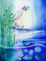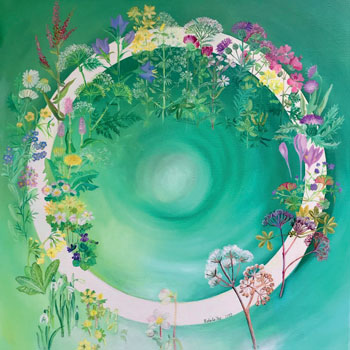 Mit ihren Pflanzenbildern interpretiert Udalrike Hamelmann die Texte der „Physica" in leuchtenden Farben, kombiniert mit reinem Blattgold. Die Symbolik der Flora erschließt sich in magisch phantasievoller Bildsprache, ergänzt durch duftende Kräuter. Gleichzeitig vermitteln die Bilder tiefes Wissen um die biologischen und therapeutischen Eigenschaften der Pflanzen.