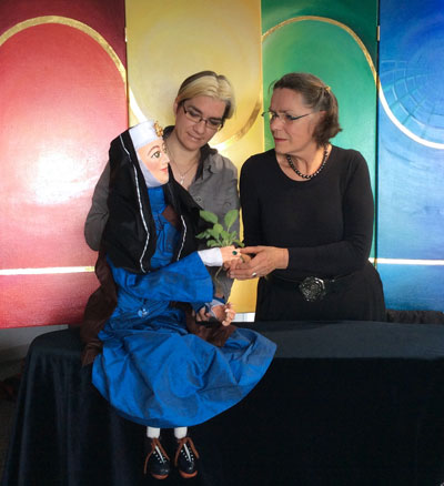 Künstlerin Udalrike Hamelmann die Texte der Heiligen.